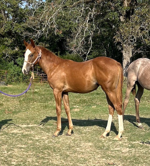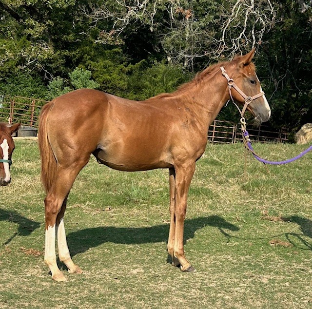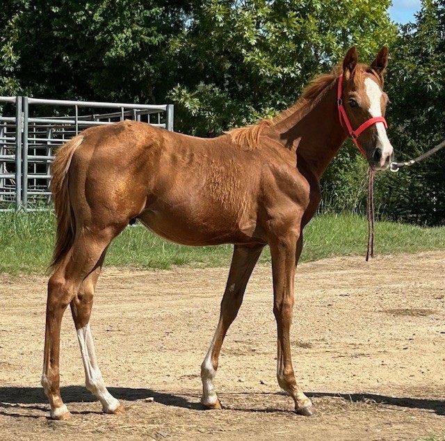 2025 chestnut filly by "Quite The Party" (Tres Seis/DTF stud) and out of "KVS Call Me Imp" a big time barrel mare that won quite alot in her barrel career, she was quite the lady. $4500